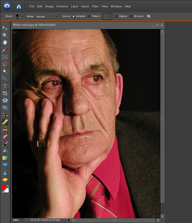 Du importerer ganske enkelt dit foto til Photoshop. Vi har valgt et portræt af en ældre mand, men du kan naturligvis bruge hvilket som helst billede. Klik på billedet for at se det i et større format.