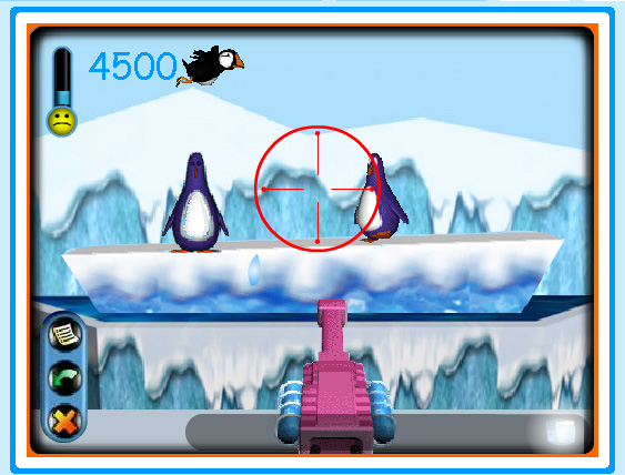 Pingviner er altid et hit, og der er oftest ret køligt i deres selskab. I dette minispil skal du dog ramme dem med isterninger for at få dem til at blive i buret. Efterhånden som du får ramt pingvinerne, bliver de hurtigere og hurtigere - i en sådan grad at din isterningpistol har svært ved at holde tempoet.