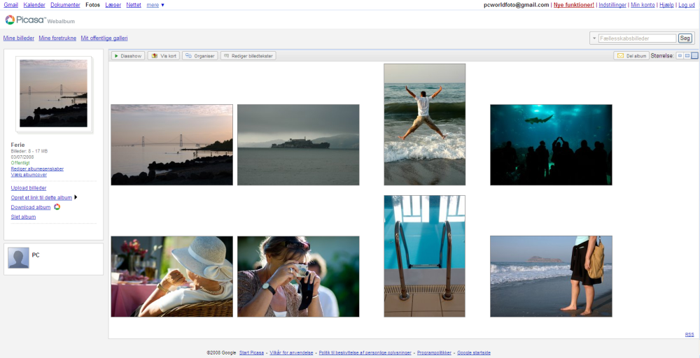 Det betyder, at du kan browse lidt rundt i Picasa 2 på din almindelige pc og klikke på de fotos, som du synes, skal sendes online. Det er lige til at gå til.