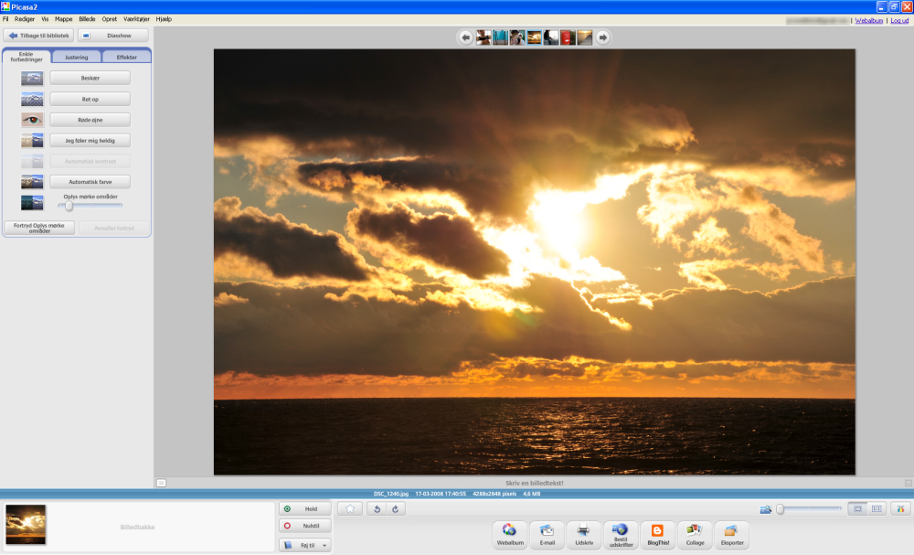 Programmet kan også foretage let billedbehandling af dine fotos, men vigtigst af alt: Det samarbejder med Picasaweb.