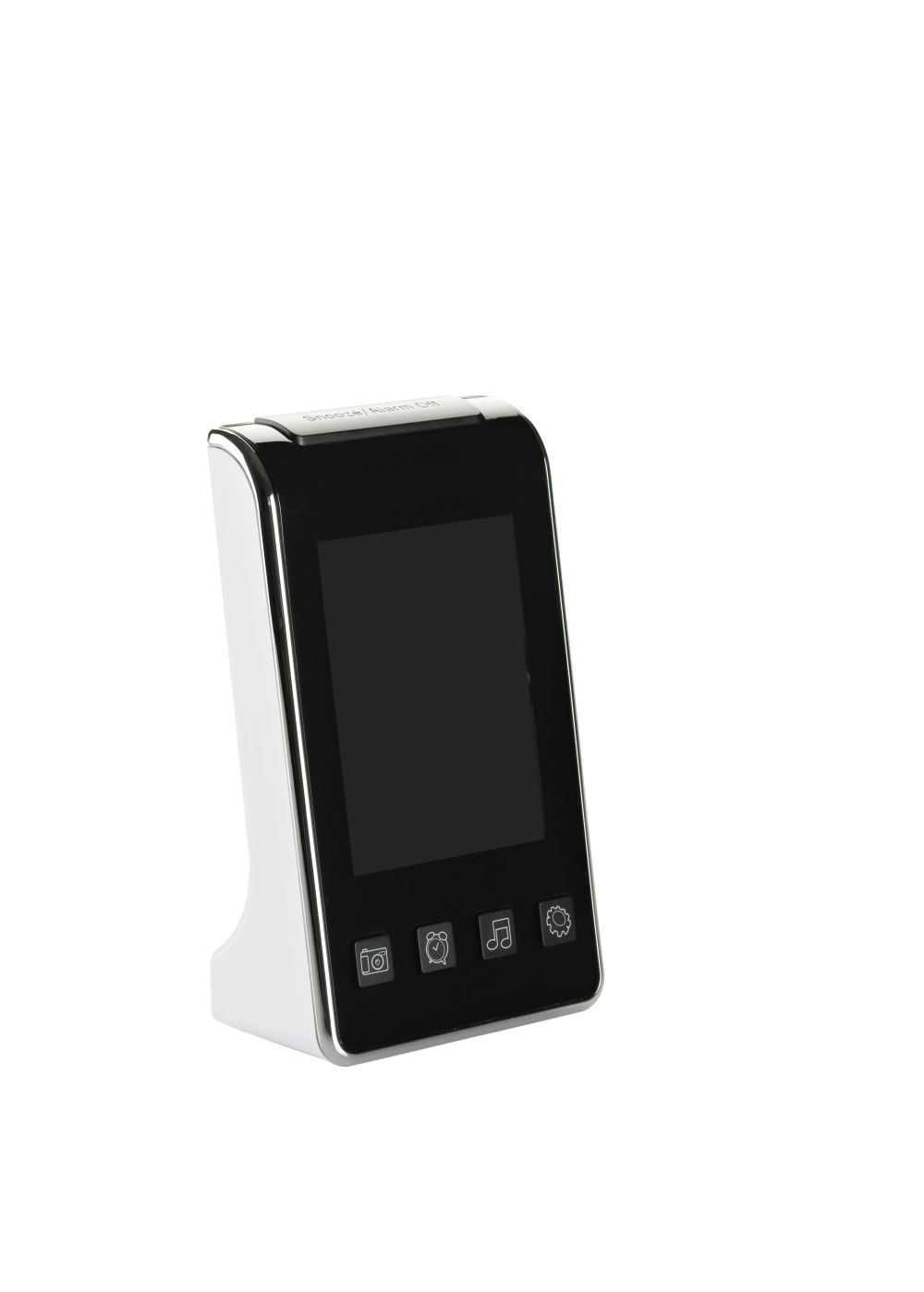 AgfaPhoto udvider konceptet for den traditionelle clockradio med en model, som udover uret og FM-radioen har en 3,5'' fotoramme og indbygget hukommelseskortlæser.