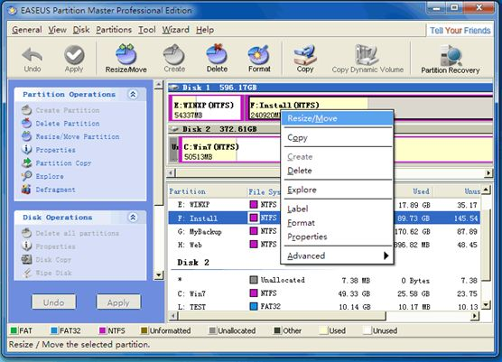 Med værktøjet Easeus Partition Master, som er ganske gratis, får du mulighed for at gøre både det og mange andre ting som for eksempel oprette, formattere, slette, resize, flytte, samle, dele og konvertere dine partitions.