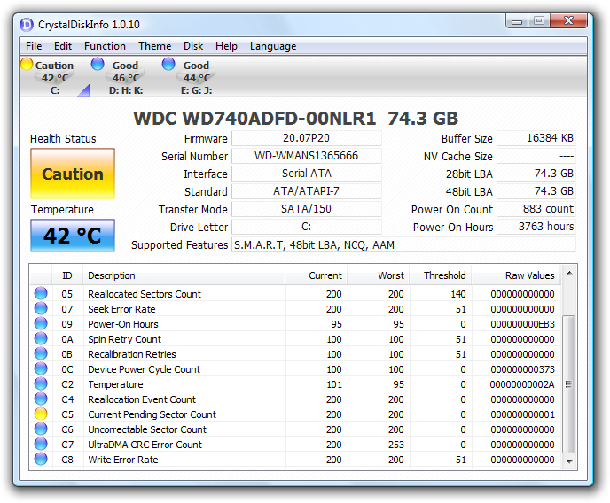 Hvis du overvåger S.M.A.R.T. attributterne, kan du se, hvordan dens status er i realtime.