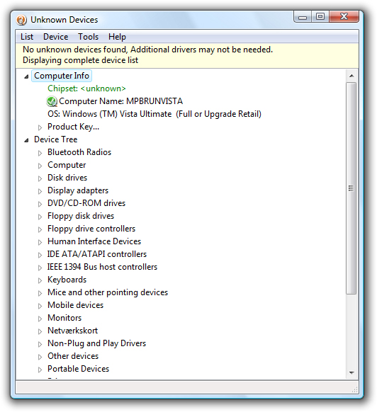 Når du har startet programmet, vil det foretage en indsamling af din computeropsætning, og hvis den finder en enhed, som Windows ikke genkendte, vil den så vidt muligt give dig svaret.