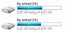 I dette tilfælde, som vist på billederne til højre, blev det til omkring 0,25 gigabyte (6,5 procent) mere plads på drevet.