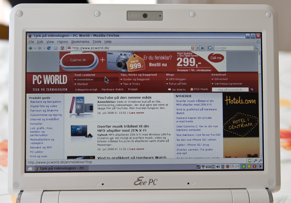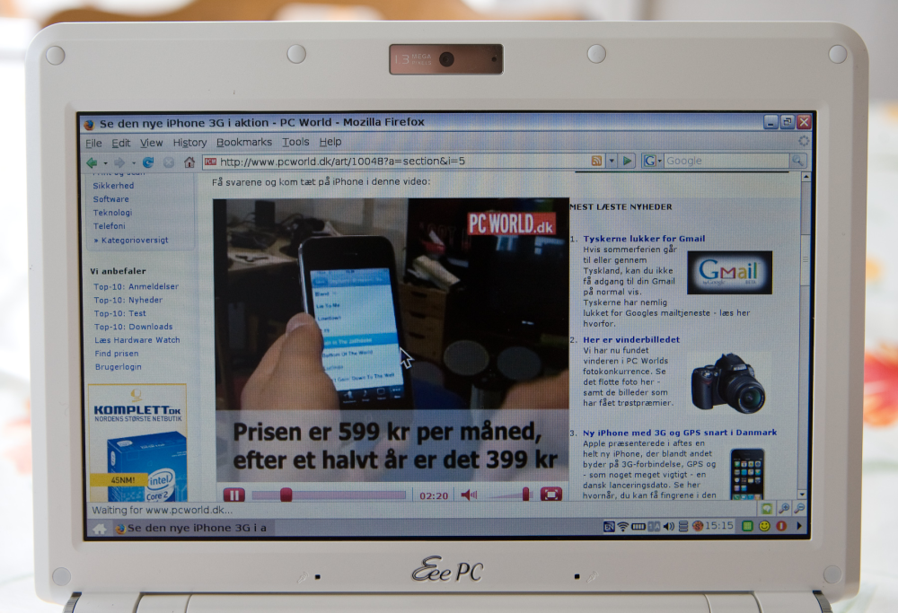 Det samme gælder naturligvis YouTube, ligesom også DR's Update og TV2 Sputnik kørte upåklageligt med det medfølgende mplayer-plugin i Firefox. Det er flot klaret af så lille en maskine.