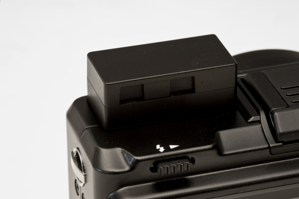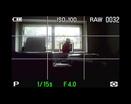 Desværre er der ingen elektrisk forbindelse mellem kamera og optisk søger, hvorfor der heller ikke er nogen mulighed for at få kameraindstillingerne vist i denne. Med den optiske søger på plads kan man slukke for LCD-skærmen og dermed forlænge batteriets ellers ikke særligt lange levetid.