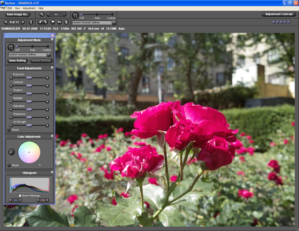Det betyder imidlertid ikke så meget, for Sigma vedlægger deres eget glimrende Sigma Photo Pro billedbehandlingsprogram, som naturligvis også kan håndtere X3F-billedfiler.