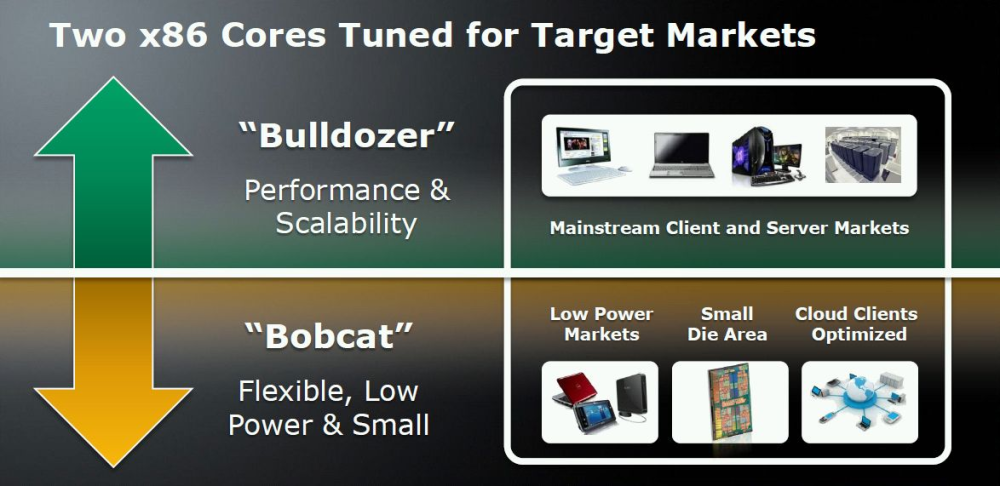 Man foranlediges let til at tro, at navngivningen af AMD's næste processorarkitekturer - Bobcat og Bulldozer - er et vink med en vognstang til konkurrenten Intel.