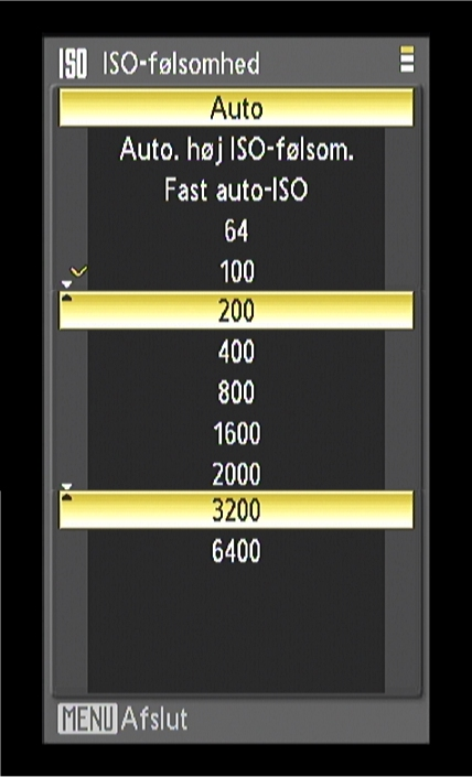 Samme opløsningsmæssige begrænsning, som gælder for Sport-indstillingen, gælder også, når man vælger ISO-indstillingerne 3.200 og 6.400 - altså 3 millioner pixels.