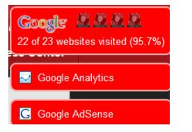 Hver gang det sker, lyder der en alarm, og der vises information på skærmen. Informationen handler om hvilke typer af Googles tjenester, som du bruger på dette tidspunkt og antal og procentdel af besøgte sider, som sender oplysninger om dig til Google.