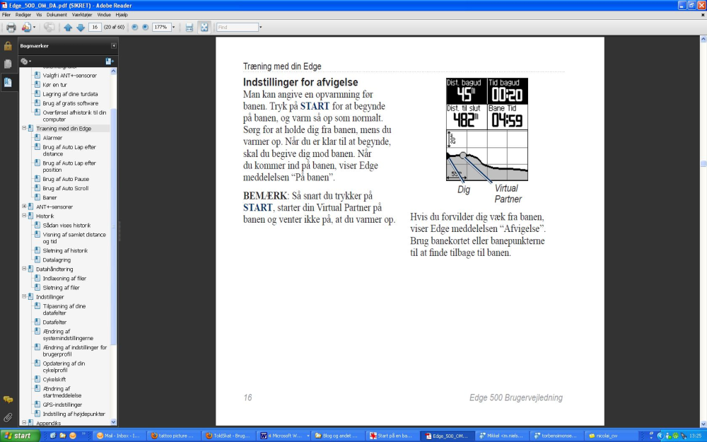 Bemærk - hvis du bliver advaret om 'low battery', så gem straks din tur. Hvis Edge når at gå helt død, ryger alle data for den aktuelle tur, øv.