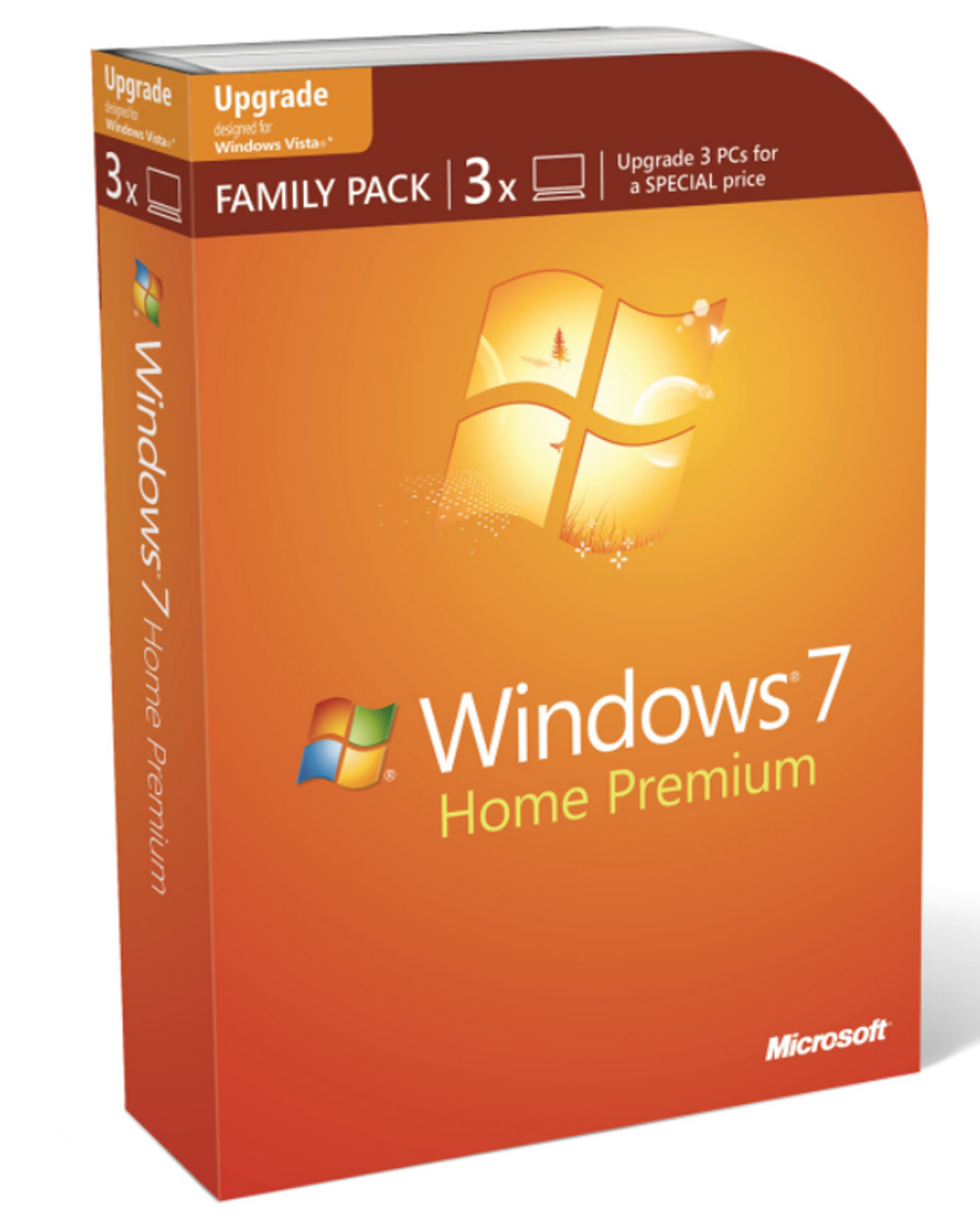 Microsofts familiepakke med tre opgraderingslicenser til Windows 7 er ude i butikkerne den 22. oktober på styresystemets et års fødselsdag.