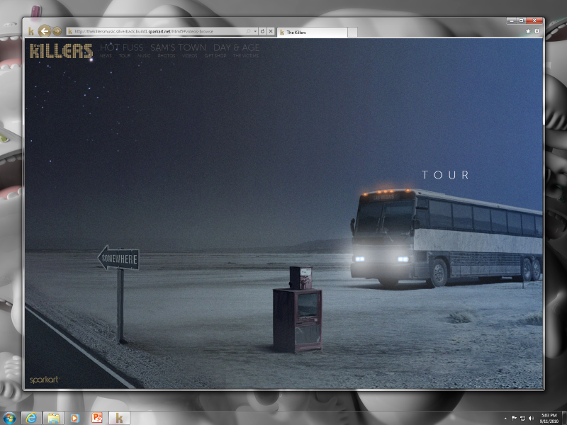 Gode eksempler er den nye webside for The Killers, hvor du navigerer rundt på et kæmpe panoramabillede, kan købe ind i en flot, interaktiv butik og se videoer med bandet. Avisen USA Today har en flot temawebside dedikeret til femårsdagen for Katrina-orkanen, og BMW har et frækt websted, hvor du kan savle over en lækker konceptbil. Du kan finde links til alle 70 partner-websites her!