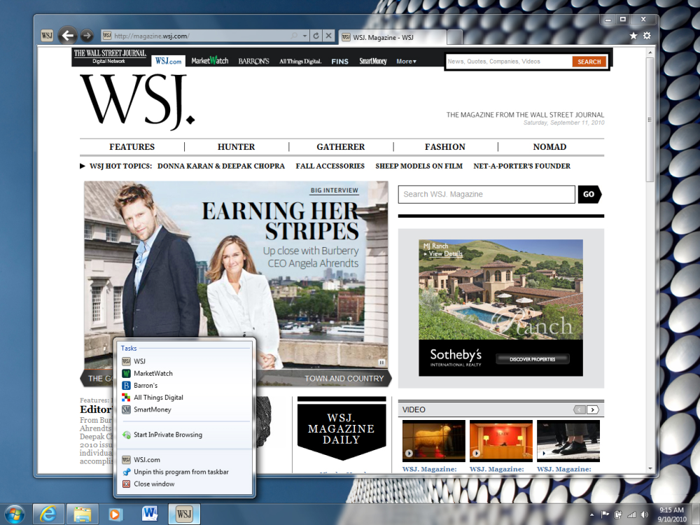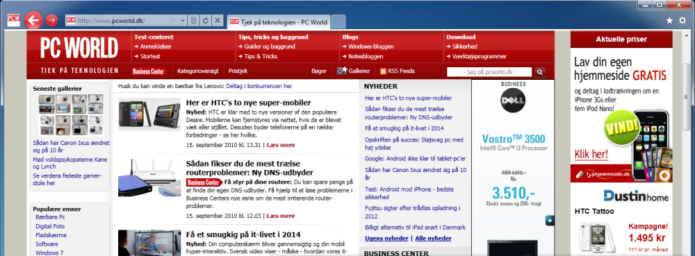 Har du Windows 7 på maskinen, får Internet Explorer 9 lige pludselig flere tricks oppe i ærmet. Du kan trække en webside ned på proceslinjen, hvor den mere eller mindre opfører sig som et almindeligt Windows-program. Er websiden optimeret til Internet Explorer 9, kan du højreklikke på ikonet i proceslinjen og få adgang til funktionalitet og områder på websiden.