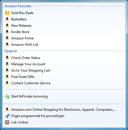 Her på pcworld.dk ville det f.eks. give mening at give adgang til vores forskellige sektioner og emner, og besøger du eksempelvis Facebook, er der nu genveje til Nyheder, Beskeder, Events og dine venner. På Amazon kan du tjekke status på dine ordrer, besøge Kindle-butikken og holde styr på din konto. Microsoft fortæller, at det er muligt at integrere dybere funktionalitet, så du eksempelvis kan styre medieafspilning, noget der allerede er demonstreret på musiktjenesten Jango.com.