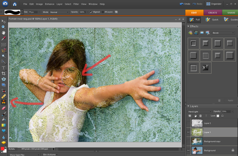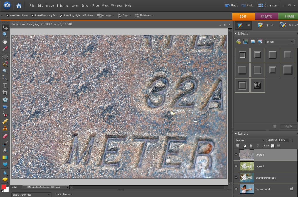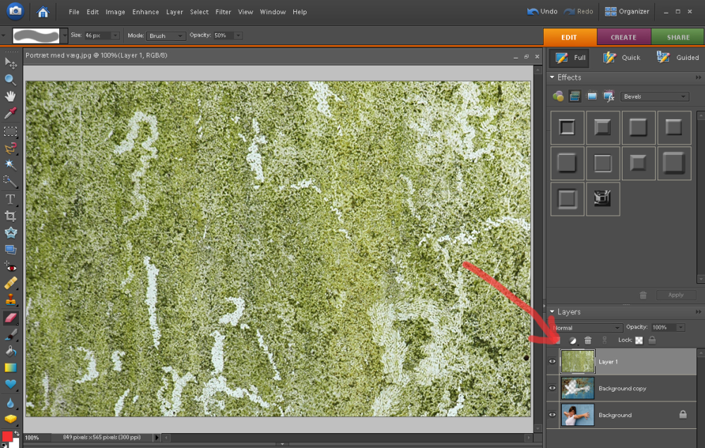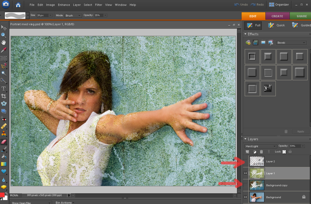 Hemmeligheden er textures. Det vil sige baggrunde med en tekstur, og det er netop dette mønster, som skal blandes sammen med et original foto.