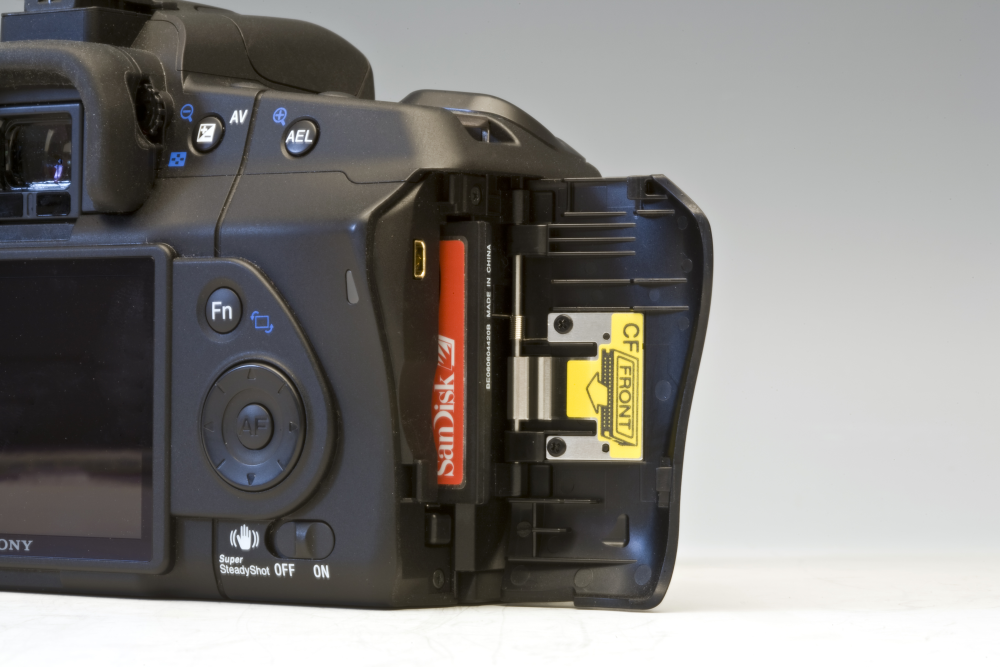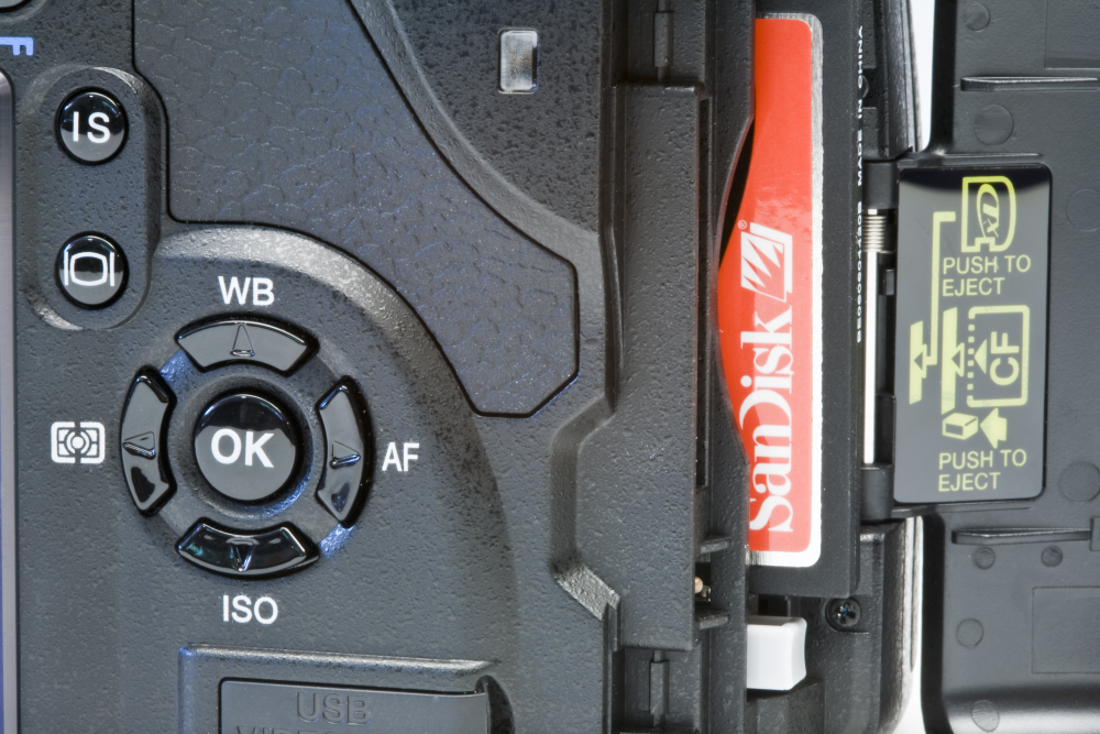 Den mindre størrelse betyder også, at Nikon har vinket farvel til CompactFlash som det foretrukne format for datalagringskort og har forsynet dette kamerahus med en SD-kortlæser, der også håndterer SDHC-flashkort med høj kapacitet.