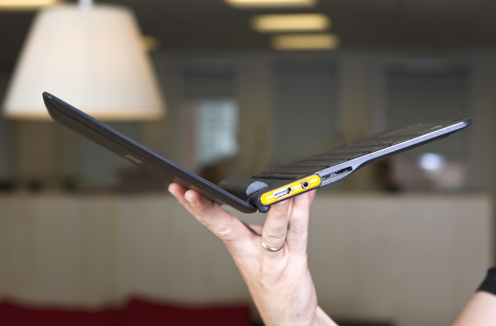 Som med al god kritik er det vigtigt at begynde positivt, så lad os gøre det: Computeren er lækker. Den vejer kun 870 gram og er derfor perfekt til at have med på farten, hvis du vil være sikker på at undgå en rygskade.