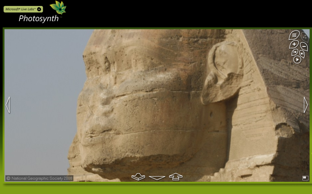 Det vil sige, at du kan gennemfotografere et område og uploade billederne. Herefter skaber Photosynth en 3D-model, og du kan efterfølgende suse rundt i området med din mus og klikke dig ind på detaljer. Motoren i programmet kaldes "seadragon", og den sørger for, at overgangen mellem billederne sker gnidningsløst og stort set uden ventetid. Det er imponerende taget i betragtning, at det er muligt at have flere tusinde billeder i et "synth", der kører direkte i browseren.
