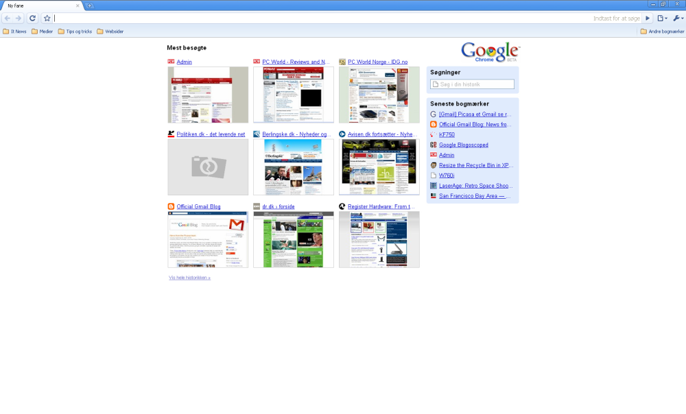 Du kan downloade Google Chrome her, og på de følgende sider kan du se screenshots fra vores prøvekørsel af browseren.
