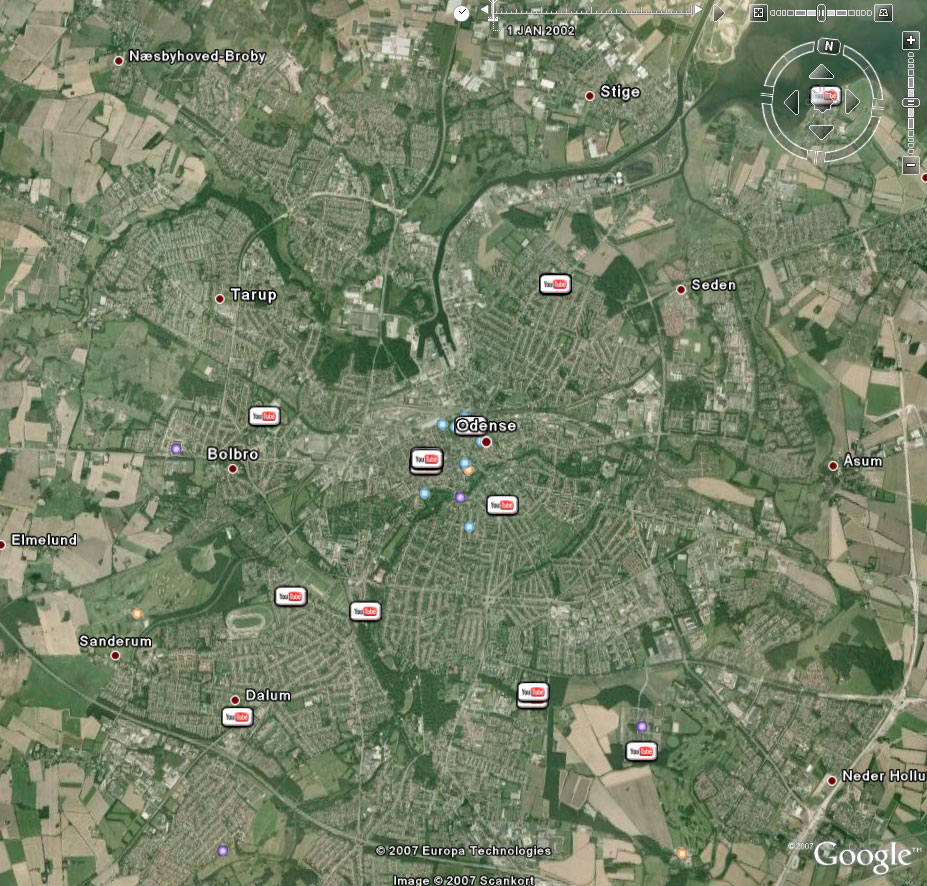 Sidste år blev der tilføjet en ny funktion i Google Earth - muligheden for at se YouTube-videoer fra forskellige lokaliteter. Læs mere om muligheden her.