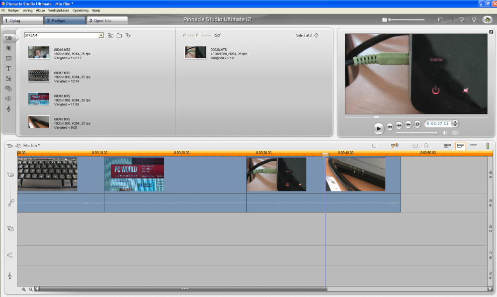 Heldigvis viste Pinnacle Studio 12 Ultimate sig fra sin gode side, da vi skulle lægge vores første optagelser ind i programmet.