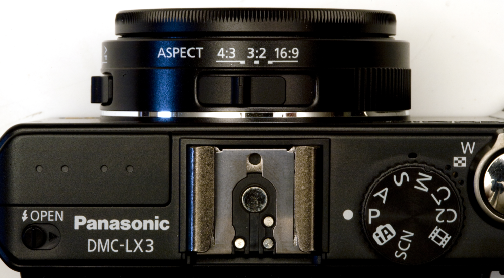 LX3 er noget af en formatspecialist. For øverst på objektivet, og meget nemt tilgængelig, har Panasonic anbragt en omskifter mellem billedformaterne 4:3, 3:2 og 16:9.