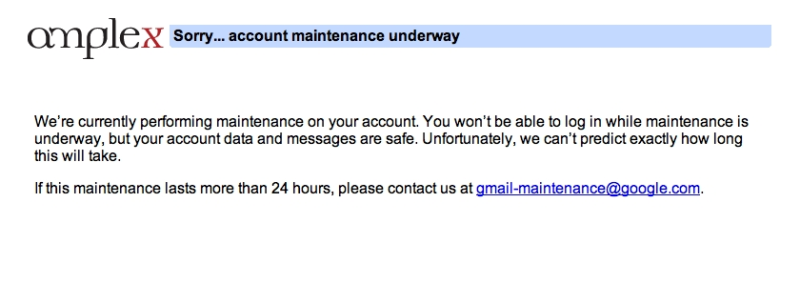 Løsningen har ifølge direktøren fungeret upåklageligt, lige indtil for 12 dage siden, hvor beskeden "Sorry... account maintenance underway" dukkede op på skærmen i stedet for hans indbakke.