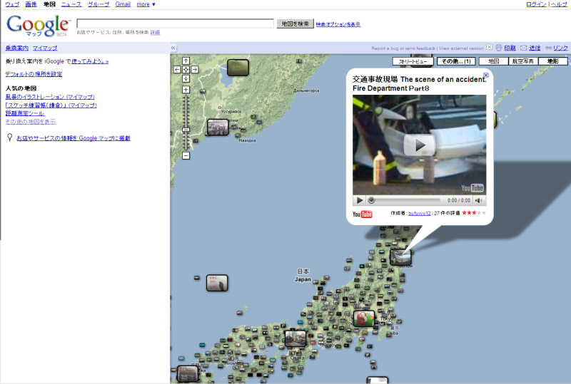 Nu er en ny funktion på vej til programmet, der vil integrere video i kortjenesten. Ifølge IDG News Service fik flere japanske brugere af Google Maps i den forgangne uge ved et tilfælde adgang til funktionen, der viser thumbnails af YouTube-videoer på Japans landkort.