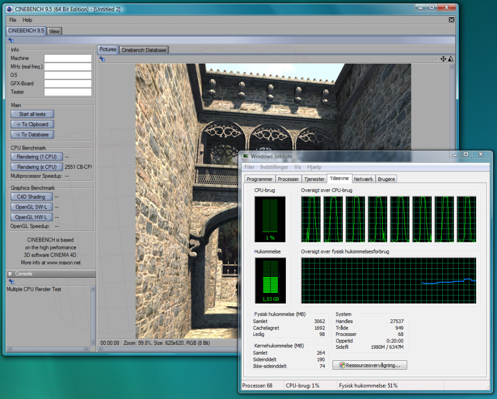 Ingen benchmark understreger den udvikling, som processorer har gennemgået de sidste par år, så godt som CineBench 9.5. Programmet skaber et 3D-billede og formår at belaste alle processorkerner i din maskine maksimalt.