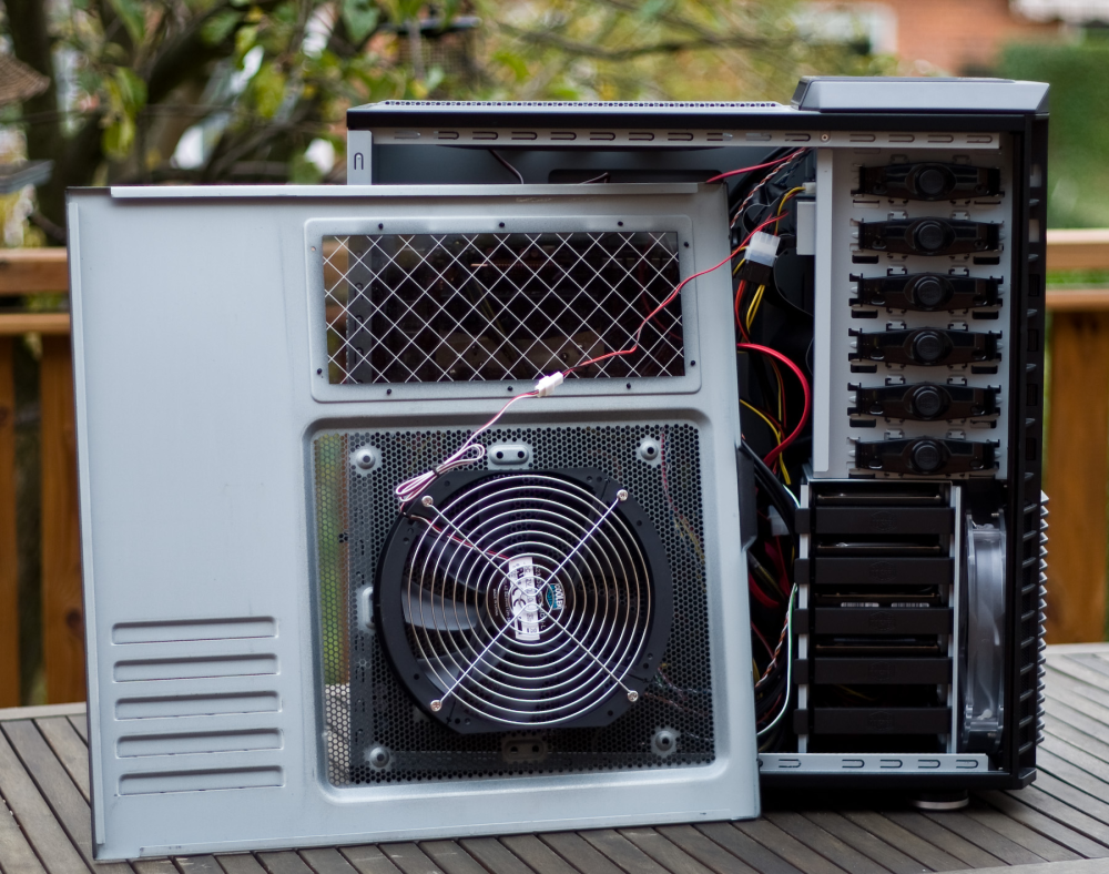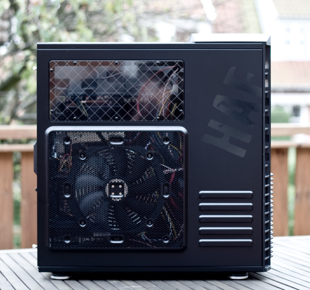 De to andre sidder henholdvis i venstre side og i toppen. Det er med til at holde indmaden kølig, men er samtidig ikke ligefrem lydløst. Det betyder mindre i vores arbejdshest, men det er ikke kabinettet til filmentusiasten, der vil have stilhed.