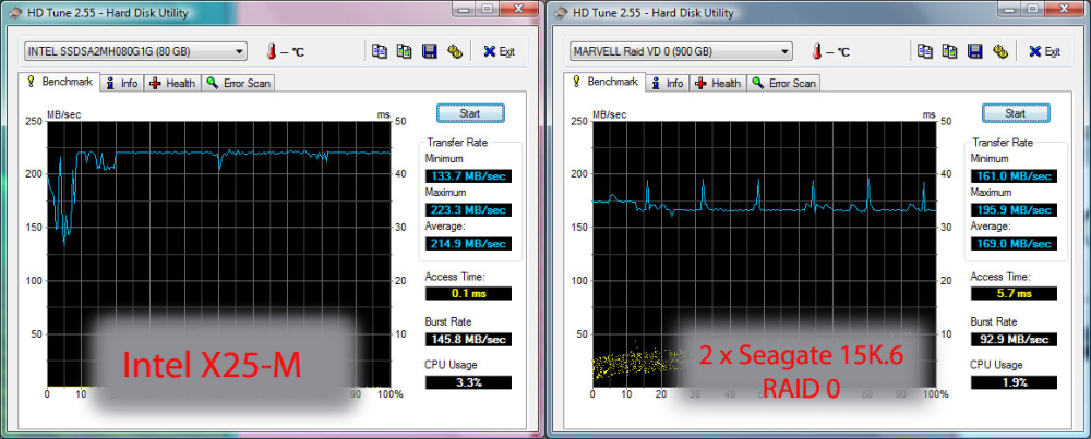Men Intels SSD drev kaldet X25-M på 80 giagbyte kan være produktet, som ændrer på den opfattelse. Det er lille, samme størrelse som en bærbar harddisk, og så er det lynhurtigt. Se bare graferne her, hvordan det udkonkurerer vores - ekstremt hurtige - harddiske selv i RAID 0.