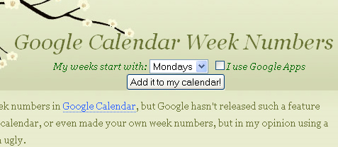 Du tilføjer dem ved at importere en kalender, der viser ugenumrene. Det foregår meget enkelt ved, at du klikker ind på denne webside, hvor du øverst kan vælge om din kalender starter om søndagen eller mandagen. Derefter klikker du på 'Add it to my calendar!', og til sidst skal du godkende det i din kalender.
