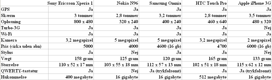 Til gengæld har du så også mulighed for at rende rundt med et lækkert mobilmonster fyldt med muligheder. Vi har kigget nærmere på fem smartphones, der er proppet med funktioner. Se dem på de næste sider.