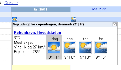 Nu har du en firedages vejrudsigt i din kalender, hvilket du også kan få i iGoogle. Bruger du Googles mulighed for en personlig startside, kan du også der vælge at få en vejrudsigt.