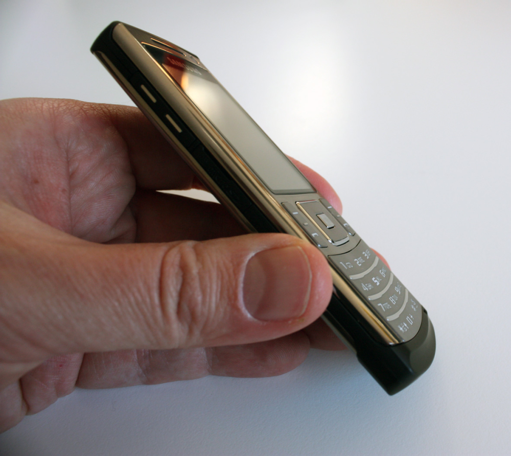 Telefonen er derfor meget tung i forhold til størrelsen, men det bidrager egentlig bare til det robuste indtryk. Den kølige overflade føles lækker i hånden - og sikkert også på cafebordet.