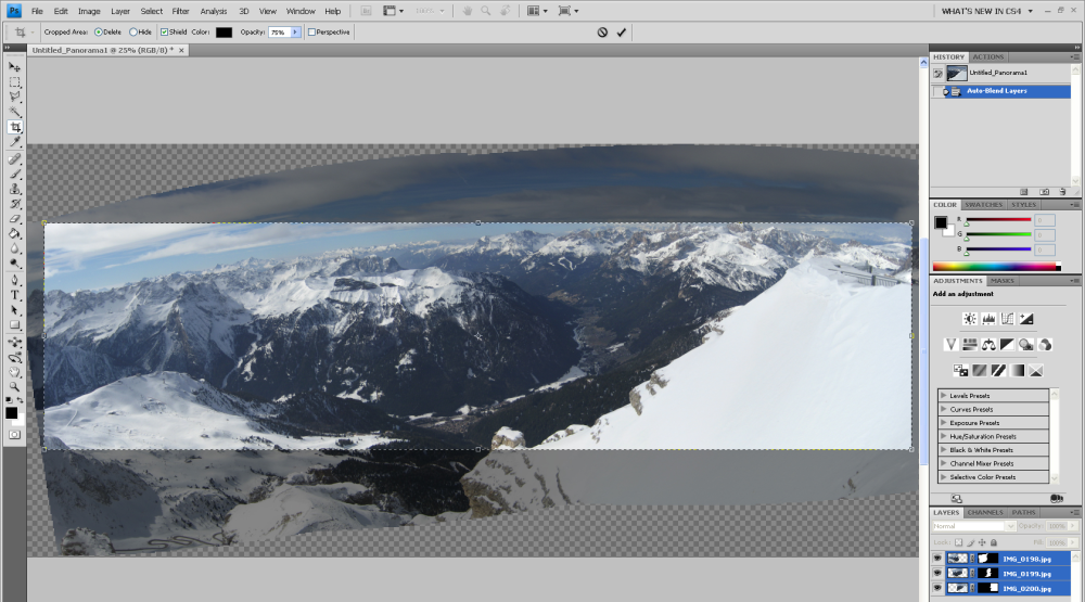 CS4 har også fået en ny panoramafunktion, der gør det lettere at strikke en masse fotos sammen. Funktionen er set i forbrugerversionen af Photoshop (Elements), og den er endda også mulig med et gratis program som AutoStich.