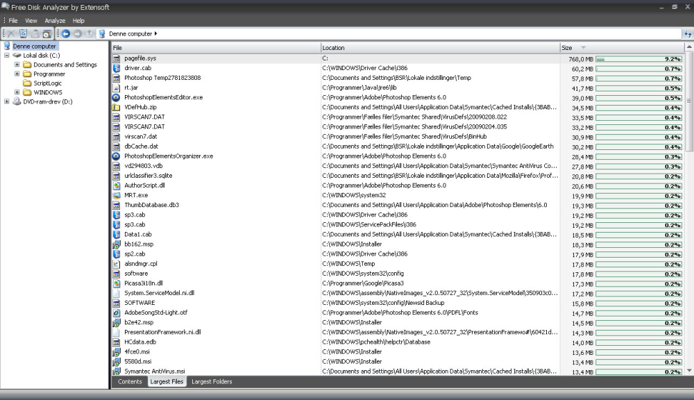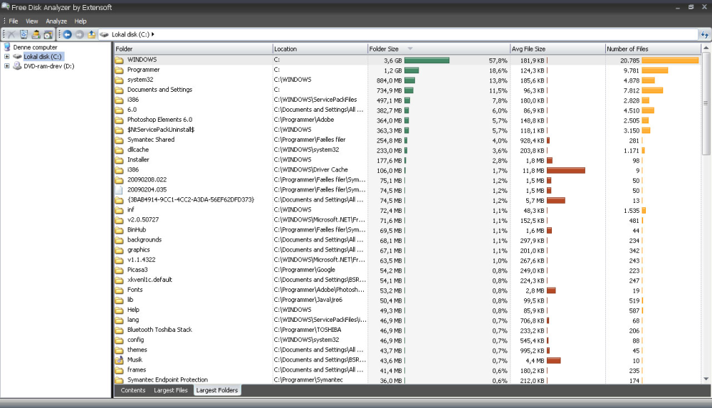 Men et andet værktøj, der kan være nyttigt, er Free Disk Analyzer. Det er et program, der hurtigt kan fremvise de største filer og mapper på computeren.