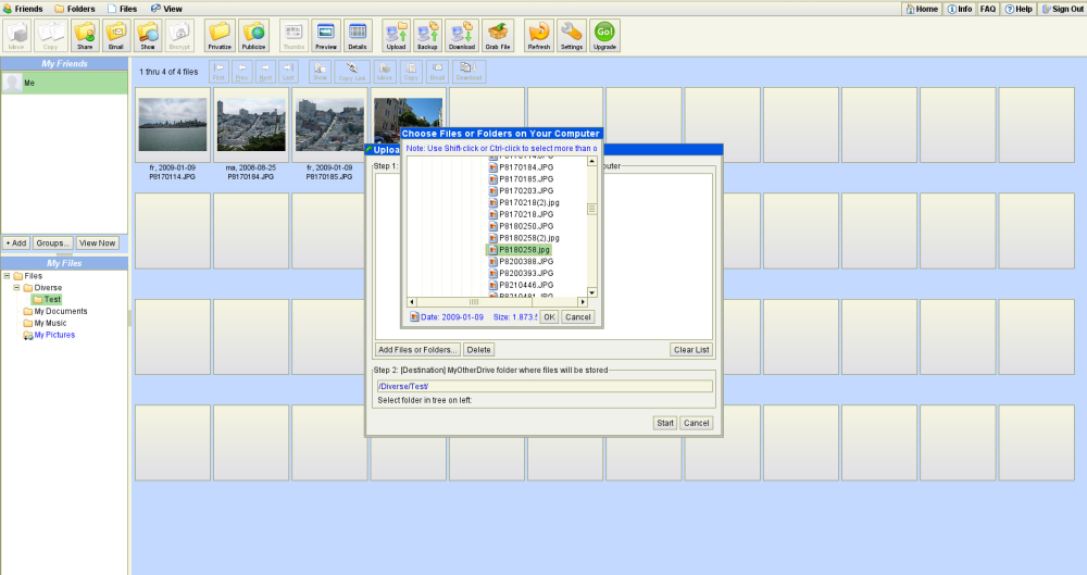 MyOtherDrive tilbyder fem gigabyte plads. Du kan oprette mapper, som du kan uploade filer til, og du kan indstille hver enkelt mappe til at være privat eller offentlig.