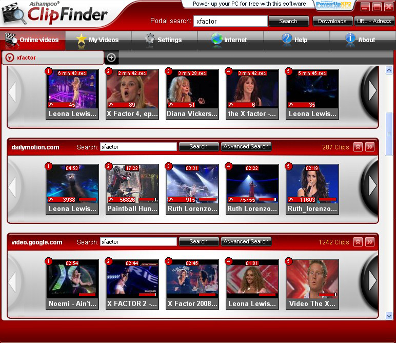 Programmet søger nemlig på tværs af usædvanligt mange webtjenester som blandt andre YouTube, MetaCafe, DailyMotion, MySpace og Blip.tv