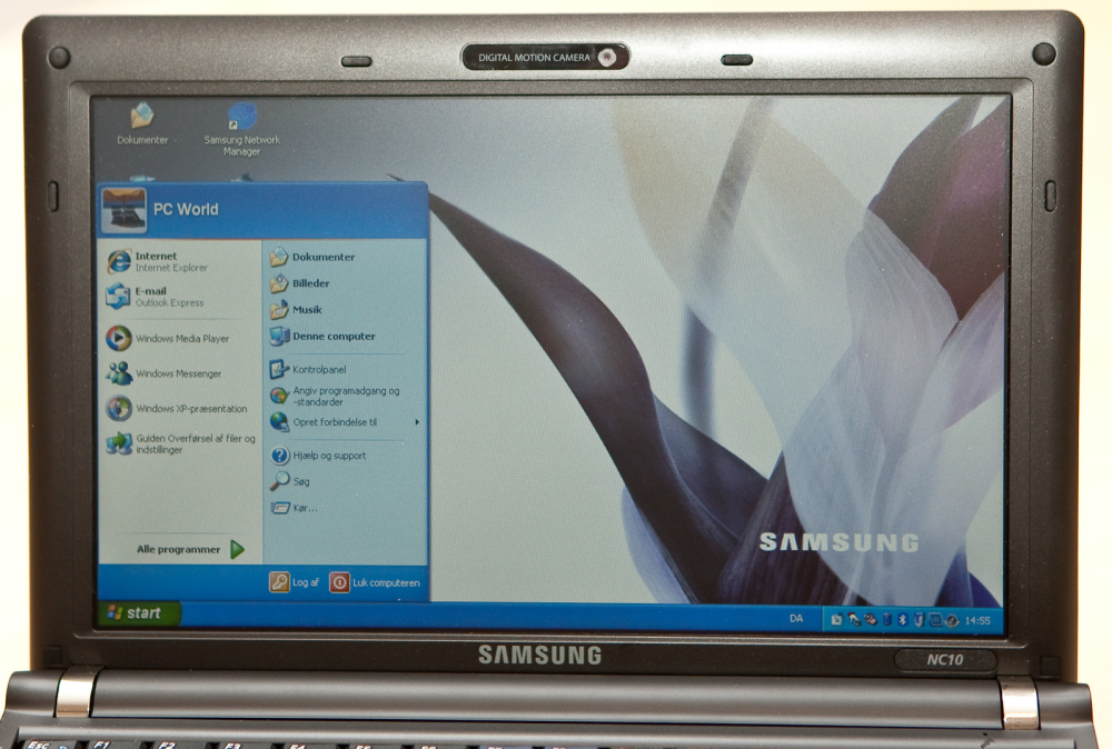 Samsung NC10 leveres med Windows XP Home med Service Pack 3 og det fungerer, som altid med mininotes fint. I hvert fald indtil vi kan få Windows 7 på de små maskiner.