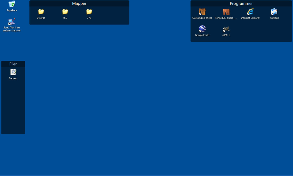 Fences giver dig nogle bokse på skrivebordet, og i de bokse kan du lægge genveje, dokumenter og så videre.
