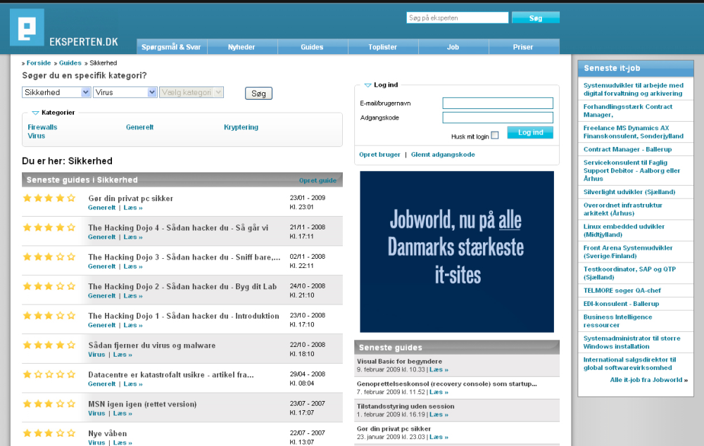 Eksperten.dk's virus-kategori, at folk får meget snavs ind på deres computer.