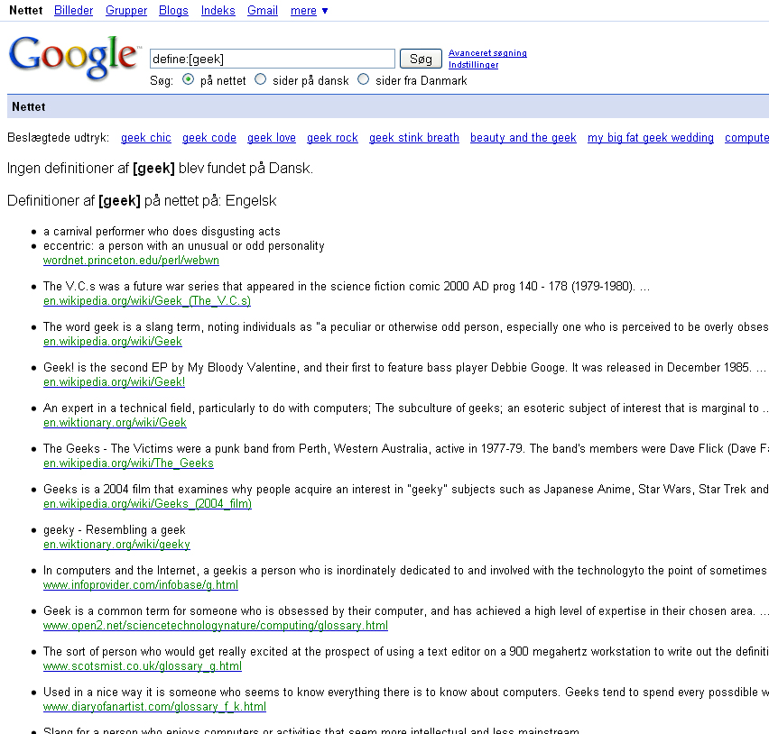 Vil du finde websider, der relaterer til en bestemt side, så skriv for eksempel related: www.sitenavn.dk, og så får du resultater, der relaterer til siden.