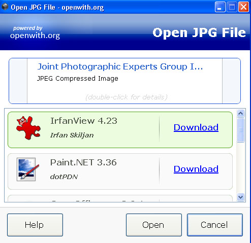 Men ikke alene kan du se, hvilke programmer der kan åbne filen, de er også gratis alle sammen, og du kan naturligvis downloade dem direkte derfra.