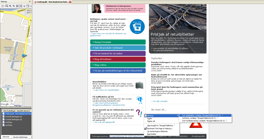I stedet for at åbne Google Maps eller Krak på nettet, så kan du - hvis du er en lykkelig Firefox-bruger - hente den super smarte udvidelse Minimap Sidebar, der giver nem kortvisning i browseren.