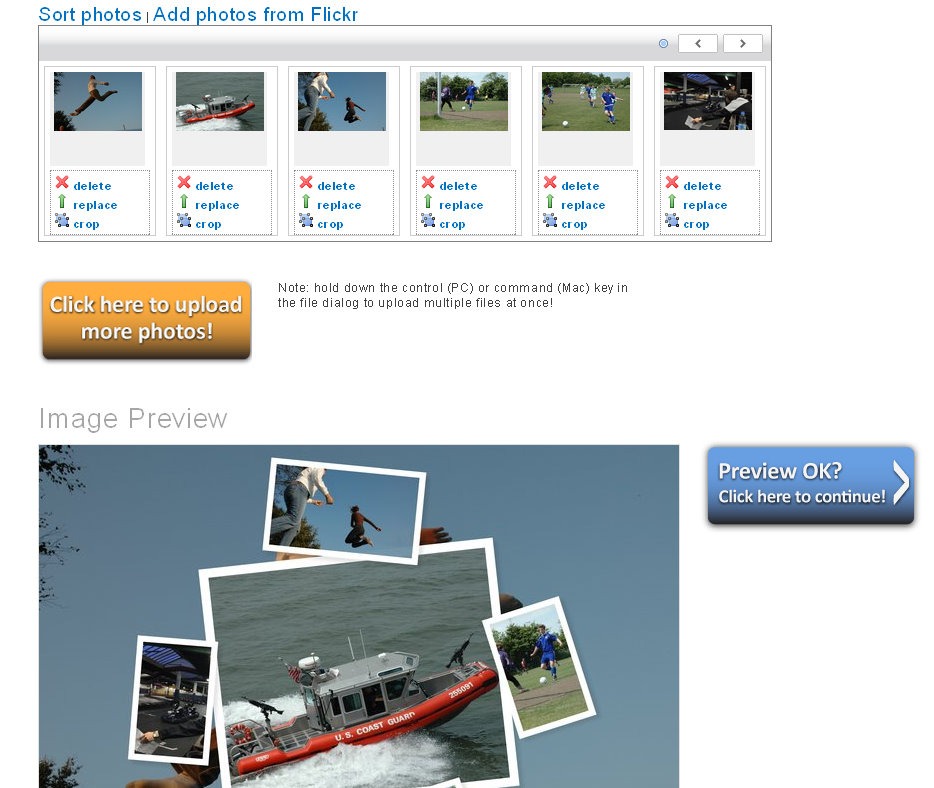 Du kan vælge, om mange eller få billeder skal indgå i dit baggrundsfoto. Herefter uploader du billederne, og programmet sætter dem selv sammen til en collage. Du kan efterfølgende sortere rundt i rækkefølgen og få placeret billederne i den orden, som du synes bedst om.