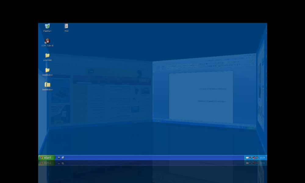 Det kan minde en lille smule om Vistas Aero-funktion, hvor man skifter mellem de åbne vinduer. Med DeskHedron er det altså skriveborde, man skifter mellem.