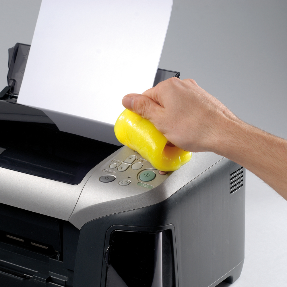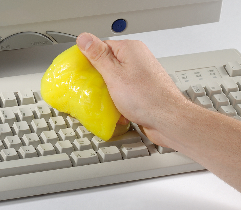 Tryk til med flad hånd - og se hvordan slimklumpen breder sig og trænger dybt ned mellem tasterne. Jo flere knapper og afkroge, der er på apparatet, desto mere velegnet er slim-løsningen.
